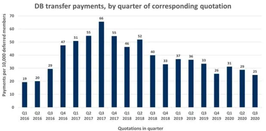 Analysis from LCP, published today (June 14), found in Q3 2020 only 25 out of every 10,000 members transferred out of their DB pension into a defined contribution plan, down 62 per cent from the peak in Q3 2017 and the lowest level since 2016.